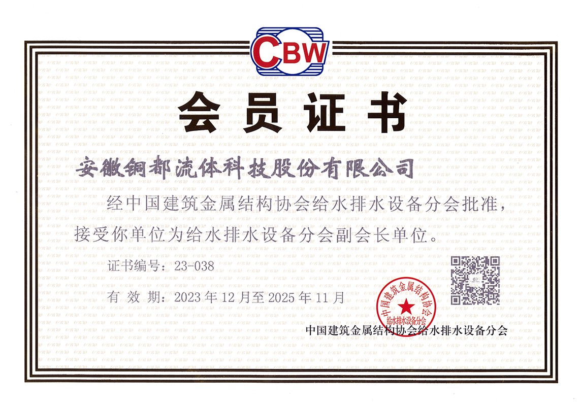 中國建筑金屬結(jié)構(gòu)協(xié)會(huì)給水排水設(shè)備分會(huì)副會(huì)長單位