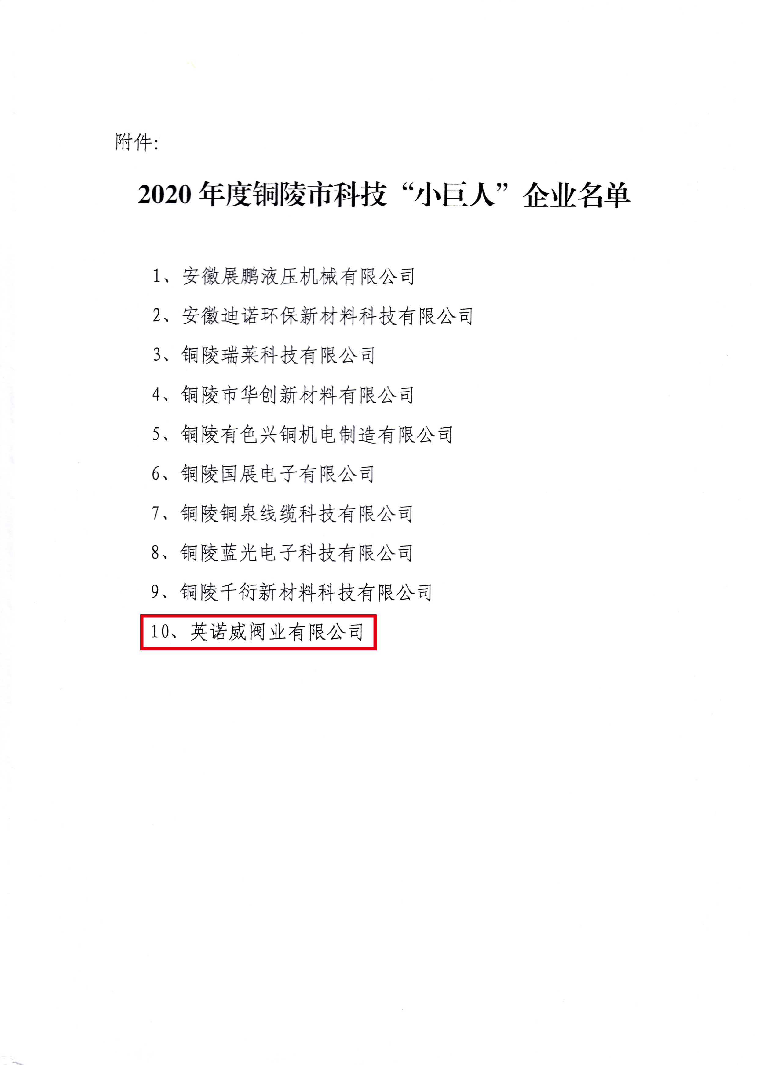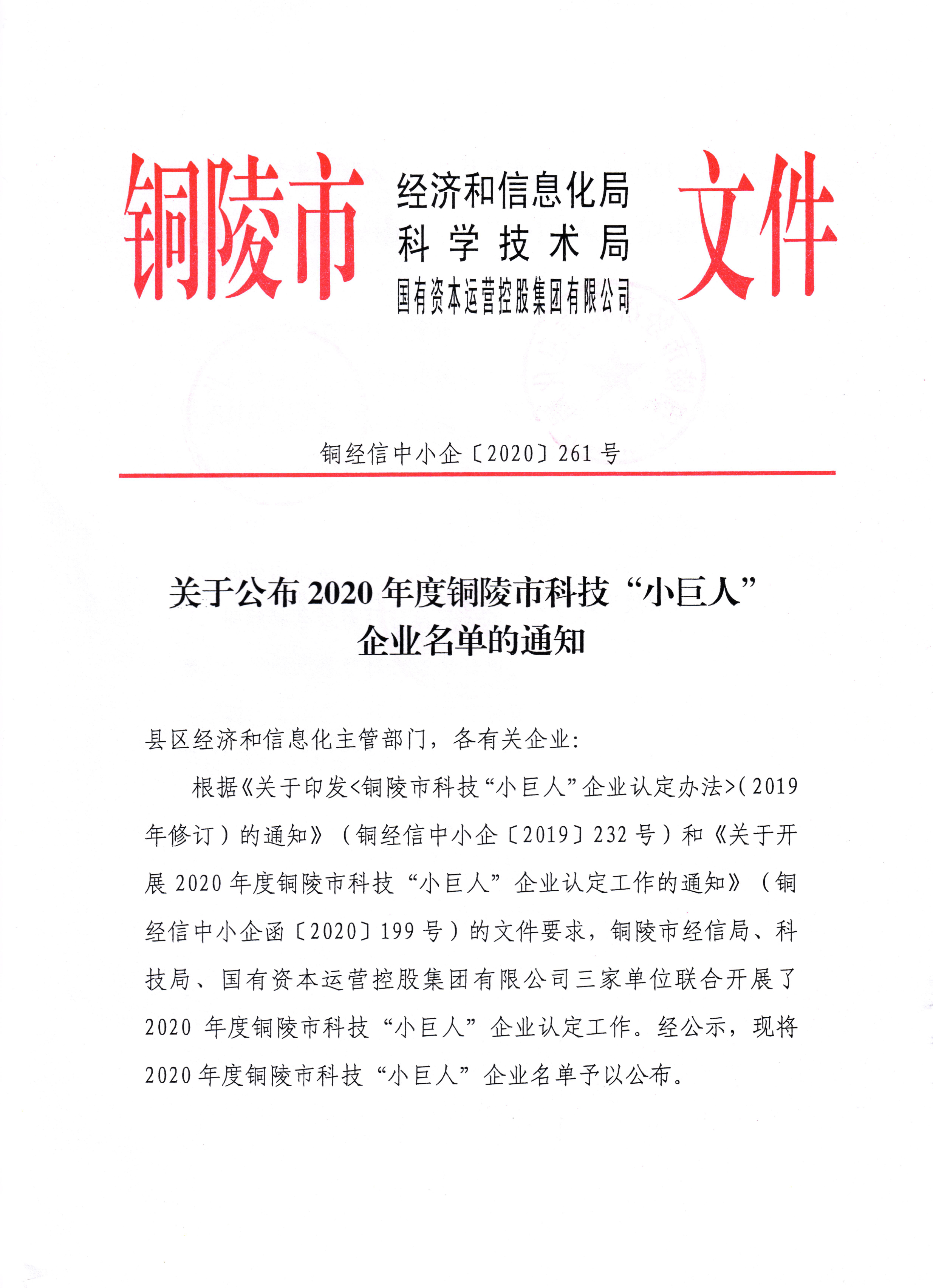 由銅陵市經(jīng)信局、科技局、發(fā)展投資集團(tuán)公司三家單位聯(lián)合開展的2020年度銅陵市“科技小巨人”企業(yè)認(rèn)定工作,銅都流體子公司英諾威閥業(yè)有限公司榜上有名。