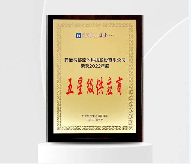 2022年度獲得合肥供水“五星級供應(yīng)商”評級的企業(yè)僅6家,此次獲獎,充分體現(xiàn)了合肥供水集團對銅都流體綜合實力的高度認(rèn)可。