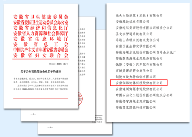 銅都流體榮獲“安徽健康企業(yè)”榮譽稱號