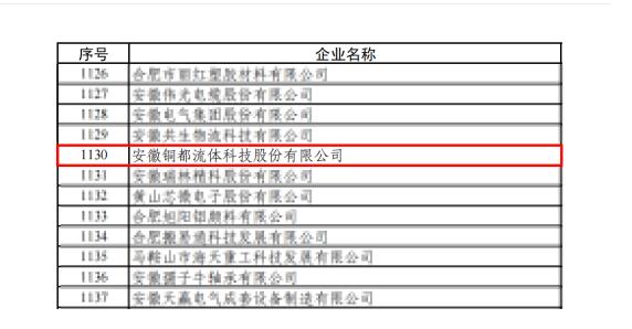 根據(jù)《第三批專精特新“小巨人”企業(yè)公示名單》,銅都流體入選第三批專精特新“小巨人”企業(yè)名單。